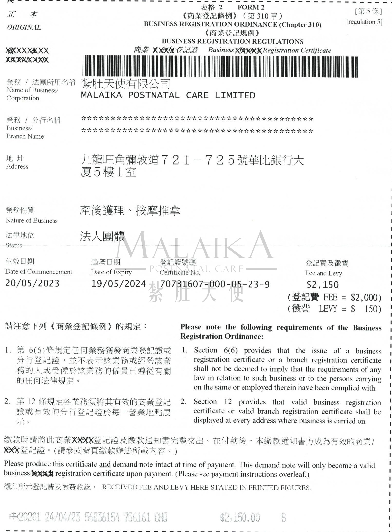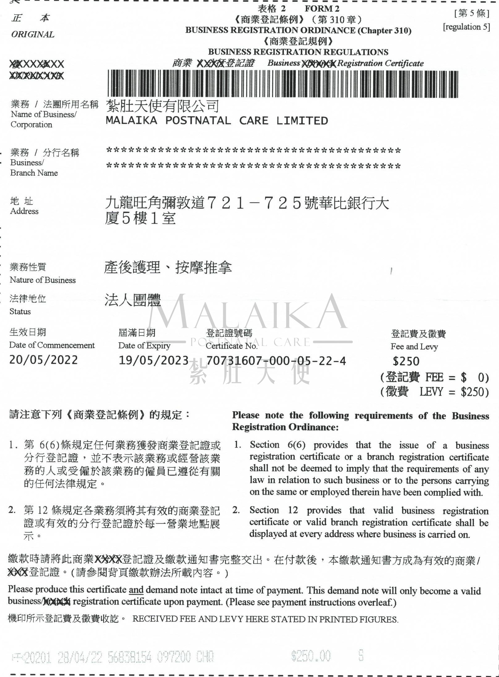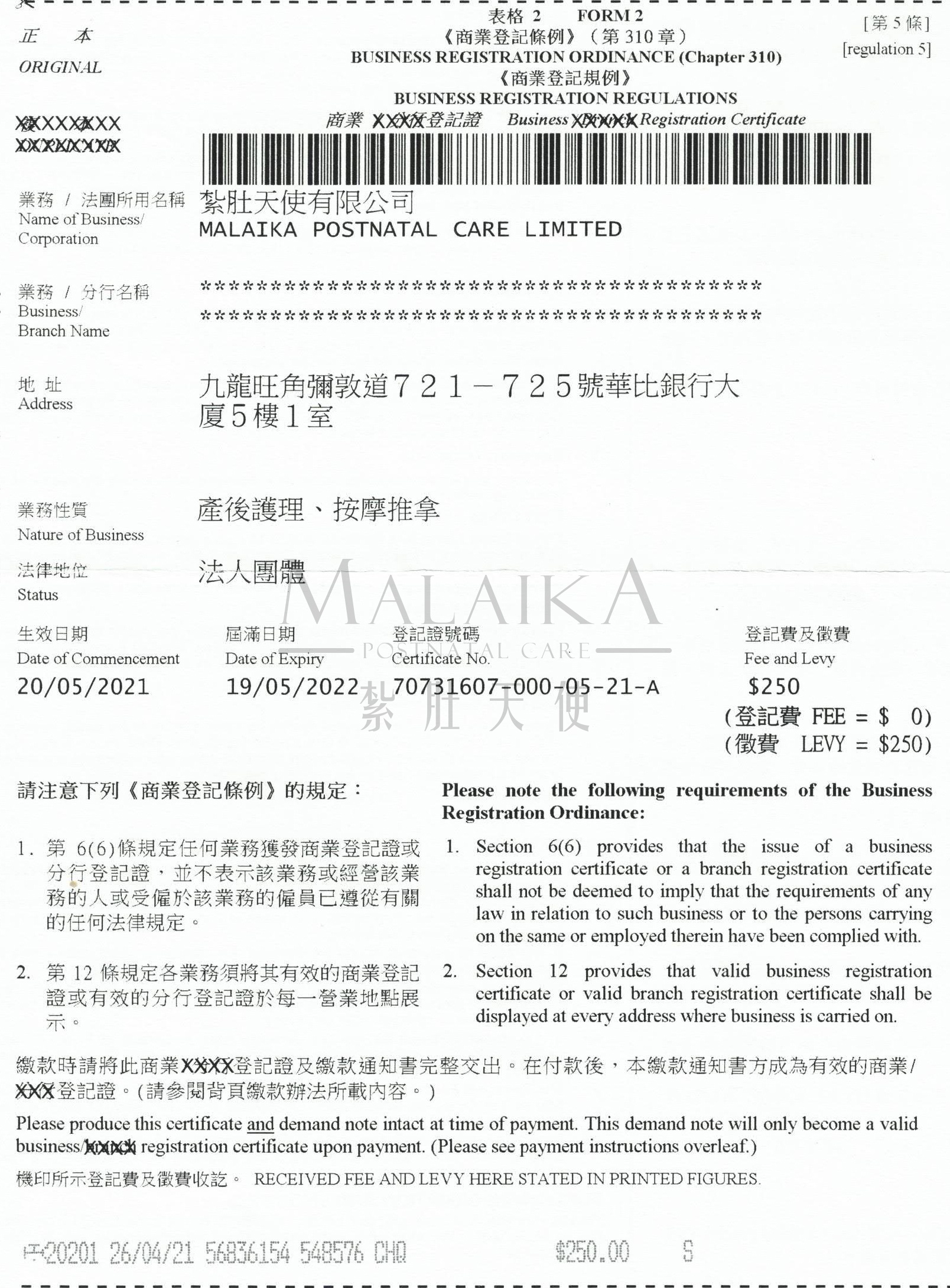 MALAIKA 紮肚天使 | 香港有效商業登記