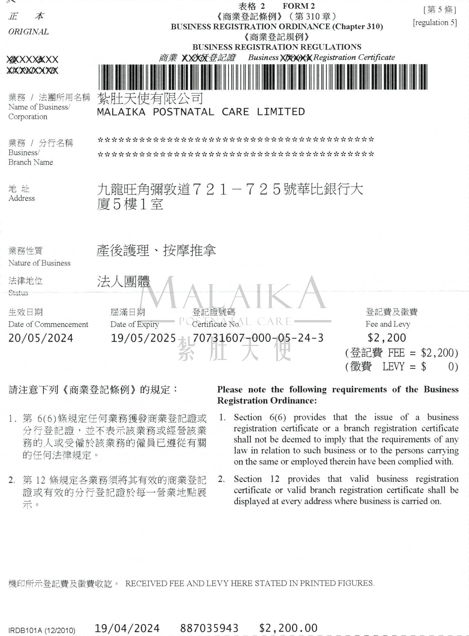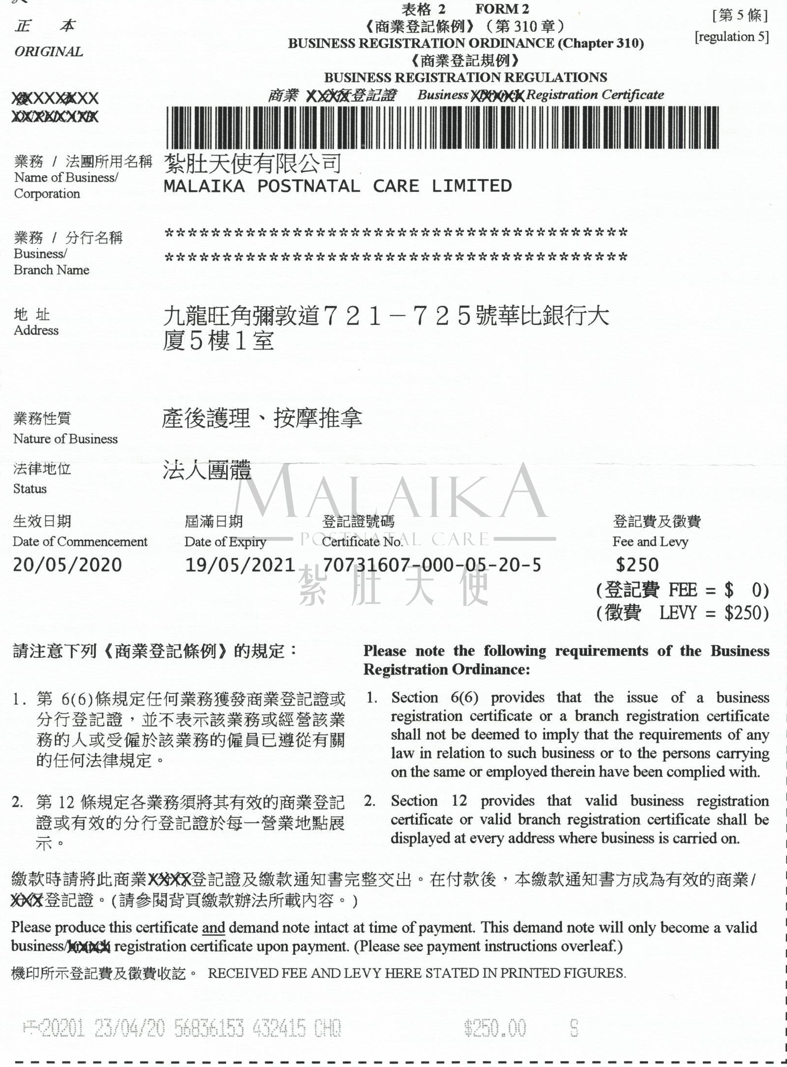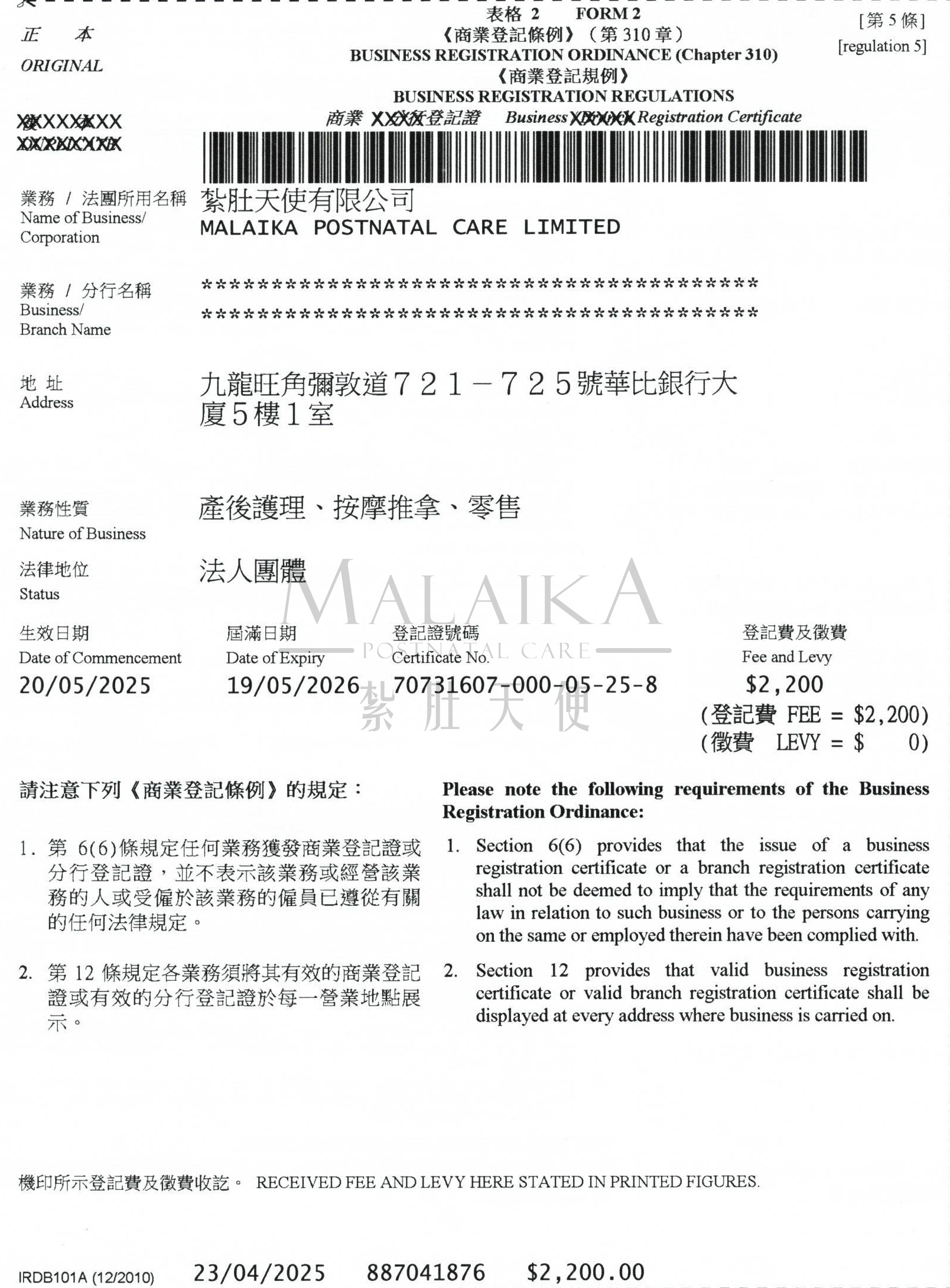 MALAIKA 紮肚天使 | 香港有效商業登記